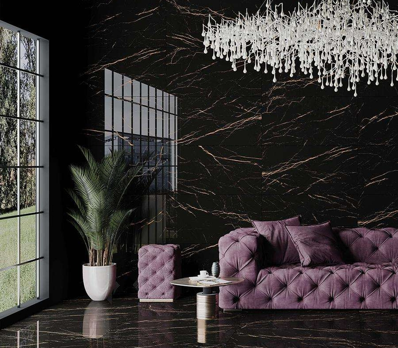 124 lei /mp tva inclusGresie cu aspect de piatră MIRROR BLACK, 60X120, lucioasă, rectificată